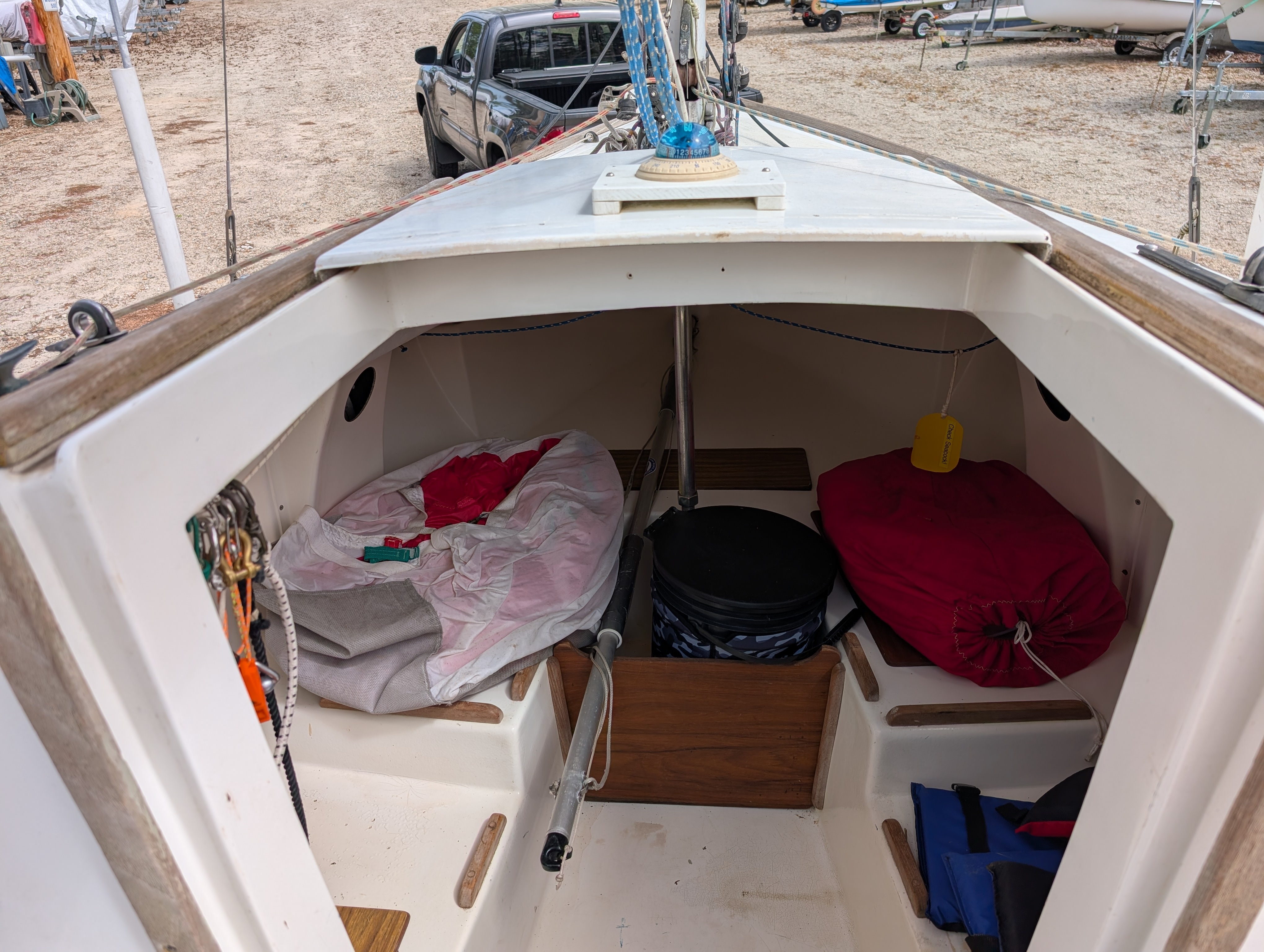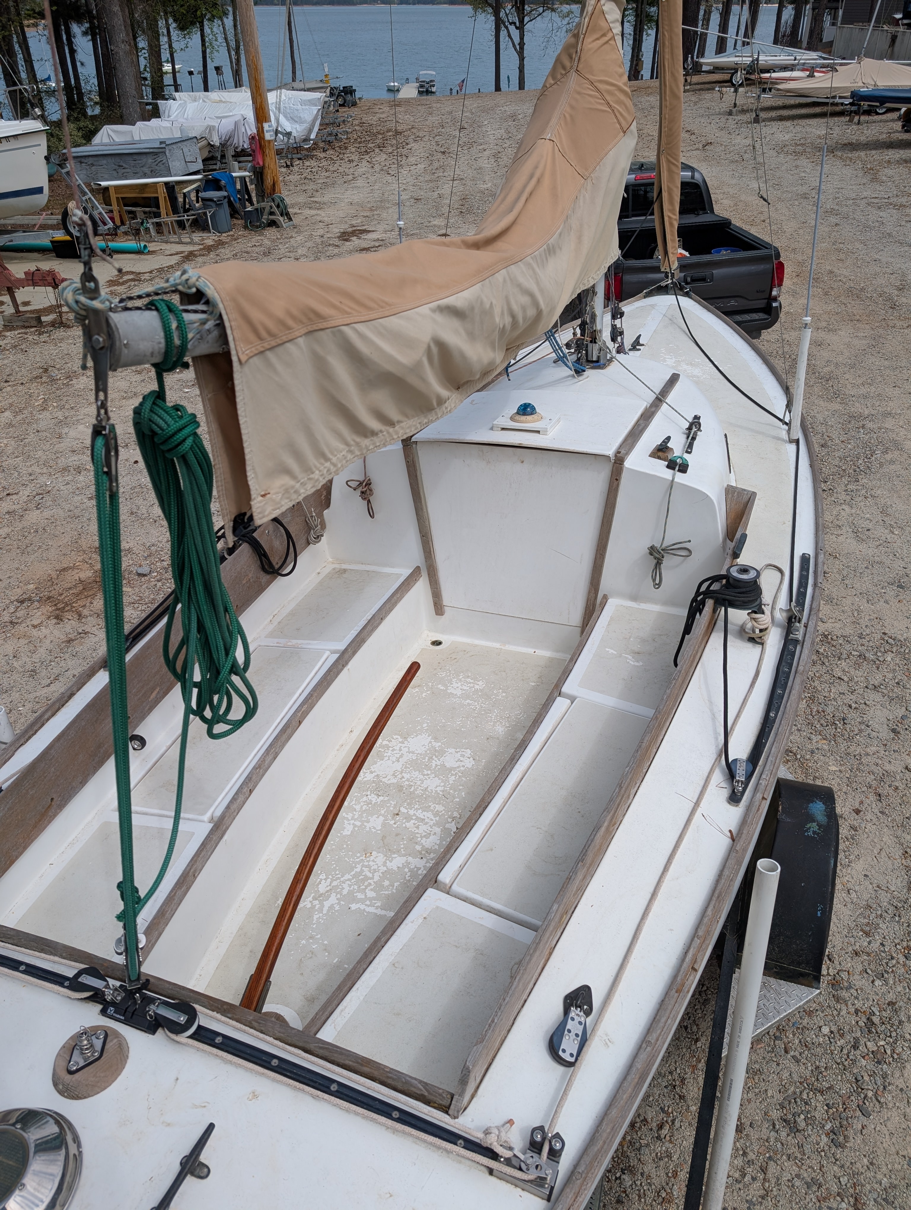 Sail# 1655 has a PHRF rating of 307 and has been dry sailed out of ASC since 2022, prior to that she was owned and sailed by several member of the lake Lanier sailing club.